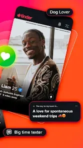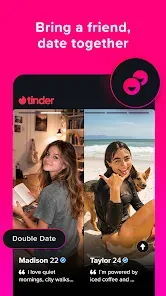 Tinder is the place to meet someone new and see where a spark might lead. With millions of people nearby and around the world, Tinder makes dating fun and helps you find someone who matches your vibe, interests, and intentions. ✨ HOW IT WORKS Meeting new people on Tinder feels easy and natural. Every match is a chance to meet someone interesting and enjoy the kind of dating experience that feels fun, relaxed, and right for you. Conversations unfold at your pace and help you figure out who you genuinely connect with.* Set your preferences and explore profiles that fit what you're looking for* Match with people nearby or around the world* Build real connections with real people through Face Check* Answer prompts that help you share more of your personality* Add photos and interests to show your style and what you care about* Go on a Double Date and bring a friend along for the fun* Let a friend know when you're meeting someone so you feel confident going out* Chat with tools designed to help you feel safe and in controlDating here is about exploring possibilities, connecting with people who catch your attention, and sparking conversations that grow. 💞 A PLACE TO BE YOURSELF The place where your personality can shine—your humor, your interests, your quirks, your style. When you share the things that make you who you are, it becomes easier to meet people who genuinely appreciate your vibe.We bring together people who are open to meeting someone interesting and trying something new. It’s a place where a simple match can turn into a great chat, a fun first date, or something unexpectedly meaningful.➕TRY TINDER PLUSWith Unlimited Likes, swipe on as many people as you want. Passport Mode™ lets you match and chat with locals anywhere in the world. Unlimited Rewinds let you take back any swipe, and Go Incognito shows you only to the people you like.🏆 EXPERIENCE TINDER GOLDTinder Gold™ includes everything in Plus™. Try a week before subscribing, see who Likes You for instant matches, use Monthly Boosts to stand out, and get Weekly Super Likes for the people you really like.🥈UPGRADE TO TINDER PLATINUMGet most of our premium features: Join Tinder Platinum™ to prioritize your Likes with potential matches, send a compliment before matching, and more dating perks 🔒 SAFETY YOU CAN TRUST Your comfort matters to us. We include multiple ways to verify profiles, added safety tools, and features that help you stay in control of how — and when — you meet new people. 💖 START YOUR NEXT CONNECTION Download now to spark something new today.--------If you choose to purchase Tinder Plus®, Tinder Gold™ or Tinder Platinum™ payment will be charged to your Google Play account, and your account will be charged for renewal within 24-hours prior to the end of the current period. Auto-renewal may be turned off at any time by going to your settings in the Google Play Store after purchase. No cancellation of the current subscription is allowed during the active subscription period. If you don’t choose to purchase Tinder Plus®, Tinder Gold™ or Tinder Platinum™, you can simply continue using Tinder for free.All photos are of models and used for illustrative purposes only.Privacy: https://www.gotinder.com/privacyTerms: https://www.gotinder.com/termsVisit: https://www.tinderlove.com/