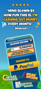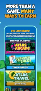 BUY VIRTUAL LAND & EARN REAL REWARDSATLAS: Earth is a location-based app where users can buy virtual land that mirrors real-world locations, 900 square feet at a time. Purchase land anywhere near your physical location in the real world and the property is yours to keep and earn virtual rent on that you can turn into real money!GET YOUR FIRST REAL ESTATE IN THE METAVERSE AT NO COSTEach parcel of land you own in the game earns you rent per second, every second of the day, every day of the year. Parcels start at just $5, and your first parcel is on us.EARN RENT & CASH OUTEarn virtual rent every second from your land and cash out the money to your PayPal or Venmo, or redeem it for gift cards when your total earnings reach $5 or more.* Players can also transfer accrued rent into more virtual land currency to keep expanding territory and earn passive income!BOOST RENT HOURLYBoost rental income on your virtual land in the metaverse for an hour when you watch an ad. Hourly rent boosts reach up to 50x base rent rates and are are activated with each ad you watch.LEADERBOARDS & LEADER ROLESShow off your virtual land investing skills to other users! Climb the leaderboards and become Mayor, Governor, or even President, by owning the most virtual landa and real estate in your city, state, or country.COLLECT MERCHANT REWARDSEarn Atlas Bucks when you shop with our retail partners in the real world. Connect a VISA or Mastercard credit card through our card-linked rewards portal and earn in-game rewards every time you swipe at our growing list of brick-and-mortar stores.NOTES:Atlas Earth is an idle tycoon business game that offers in-game purchases. Is it most ideally played on smartphones, not tablets.A parcel of virtual land in the game is not an NFT, and buying property does not require crypto.In order to play the game and earn rewards, please agree to our Terms of Service, which can be found here: https://legal.atlasreality.com/content/earth/terms-of-service.html*Paying Rent is our way of saying thank you. It is our form of loyalty/cash-back for enjoying our game. Although we avoid such scenarios, Rent is not guaranteed and may change or pause.Please get in touch with us at support@atlasreality.com if you have any questions.Atlas Earth requirements for Android Devices:GPS and location servicesStrong internet connectionAndroid 8.0+Rooted devices are not supported2 GB RAM1.6GHz+ CPU speed