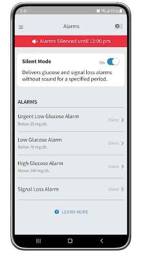 You can use silent mode to enjoy a less interrupted daytime. Silent your glucose alarms (without sound or vibration) for up to 6 hours, during which you can still get notifications on your lock screen. Control your alarm settings at your will and convenience.